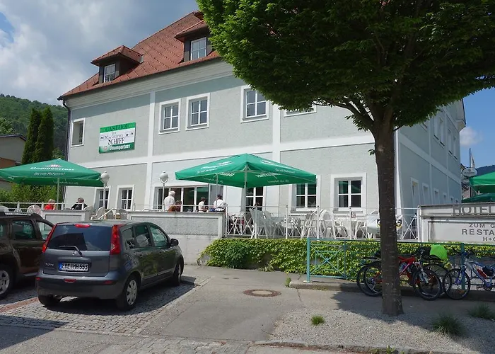 שוכן תוך 0.8 ק"מ על מנזר אנגלזל, בעל 3 כוכבים אנגלהרטצל Goldenes Schiff Hotel-Mietparkplatze כולל ויי פיי במקומות ציבוריים וכמו כן גם חניה פרטית ללא תשלום באתר. המלון ממוקם במרחק של 850 מטרים מ-Wassererlebnis Mini-Donau" mit.